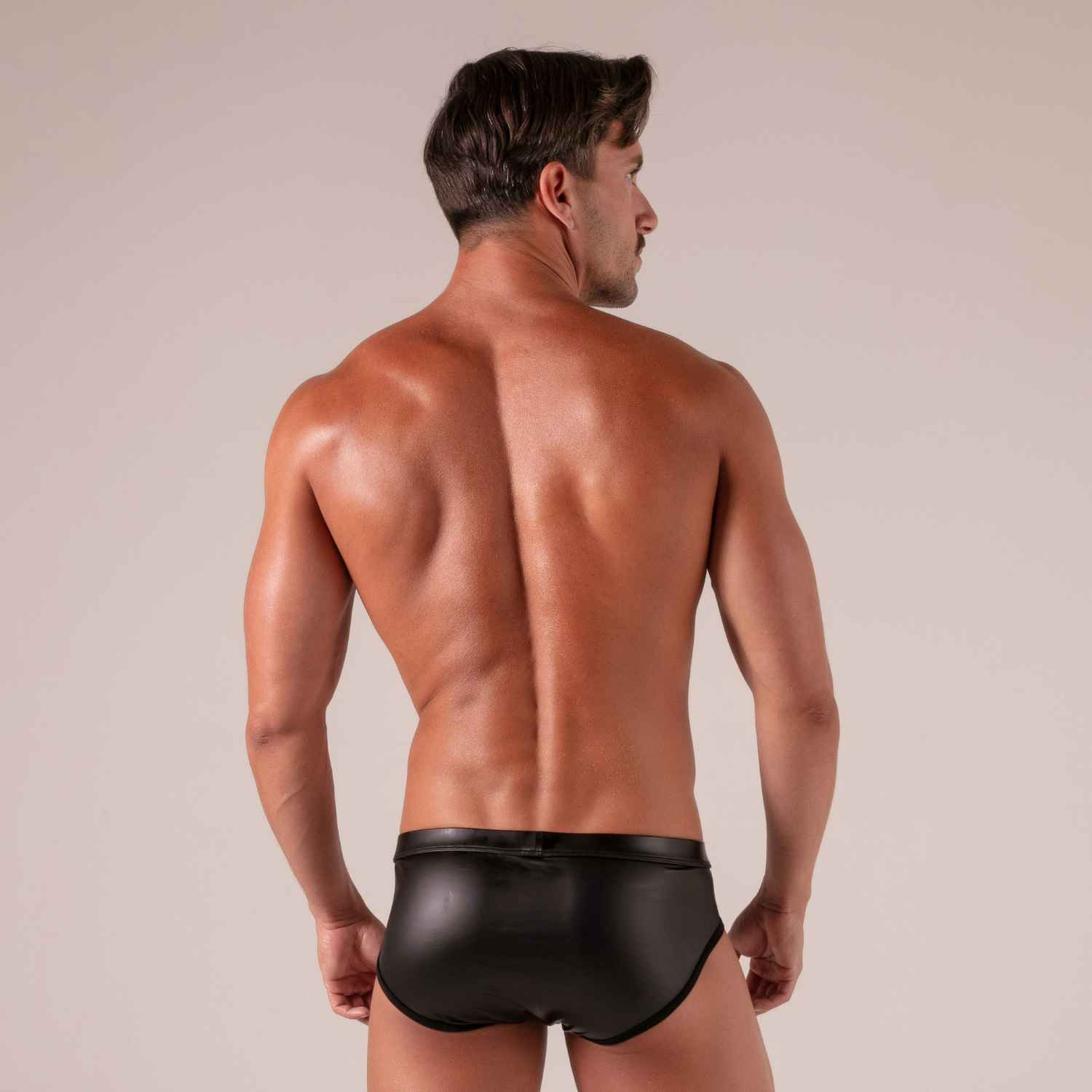 "this brief is ideal for men who want to feel sexy without overdoing it. it hugs the body perfectly, highlights the shape without discomfort. the visual effect is striking and the faux leather adds real erotic value without sacrificing practicality. a bold piece to boost confidence and charisma."