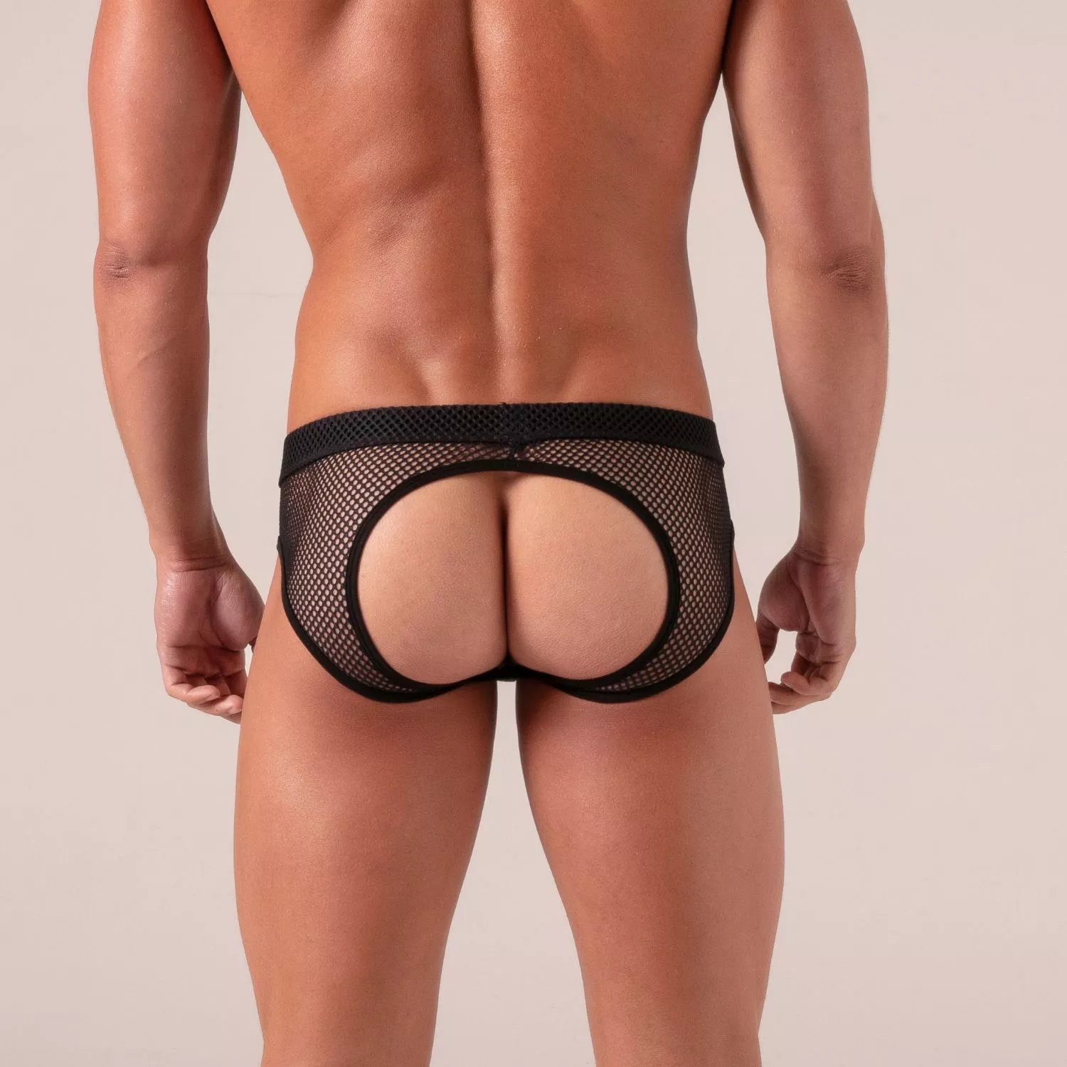This open-back men’s brief makes no compromise between comfort and erotic appeal. the front offers support and elegance, while the open back enhances the curve of the lower back and draws the eye. its soft mesh provides subtle transparency, worthy of a sexy sheer brief.