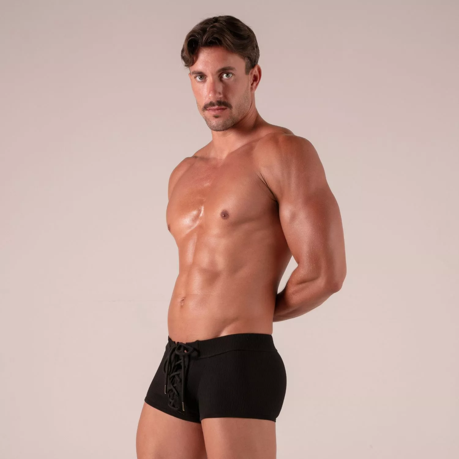 "The laced boxer ticks all the boxes: pleasant to wear, visually striking, and undeniably sexy. the front lacing draws attention, but it's the cut and ribbed fabric that make all the difference. it flatters while remaining very comfortable."